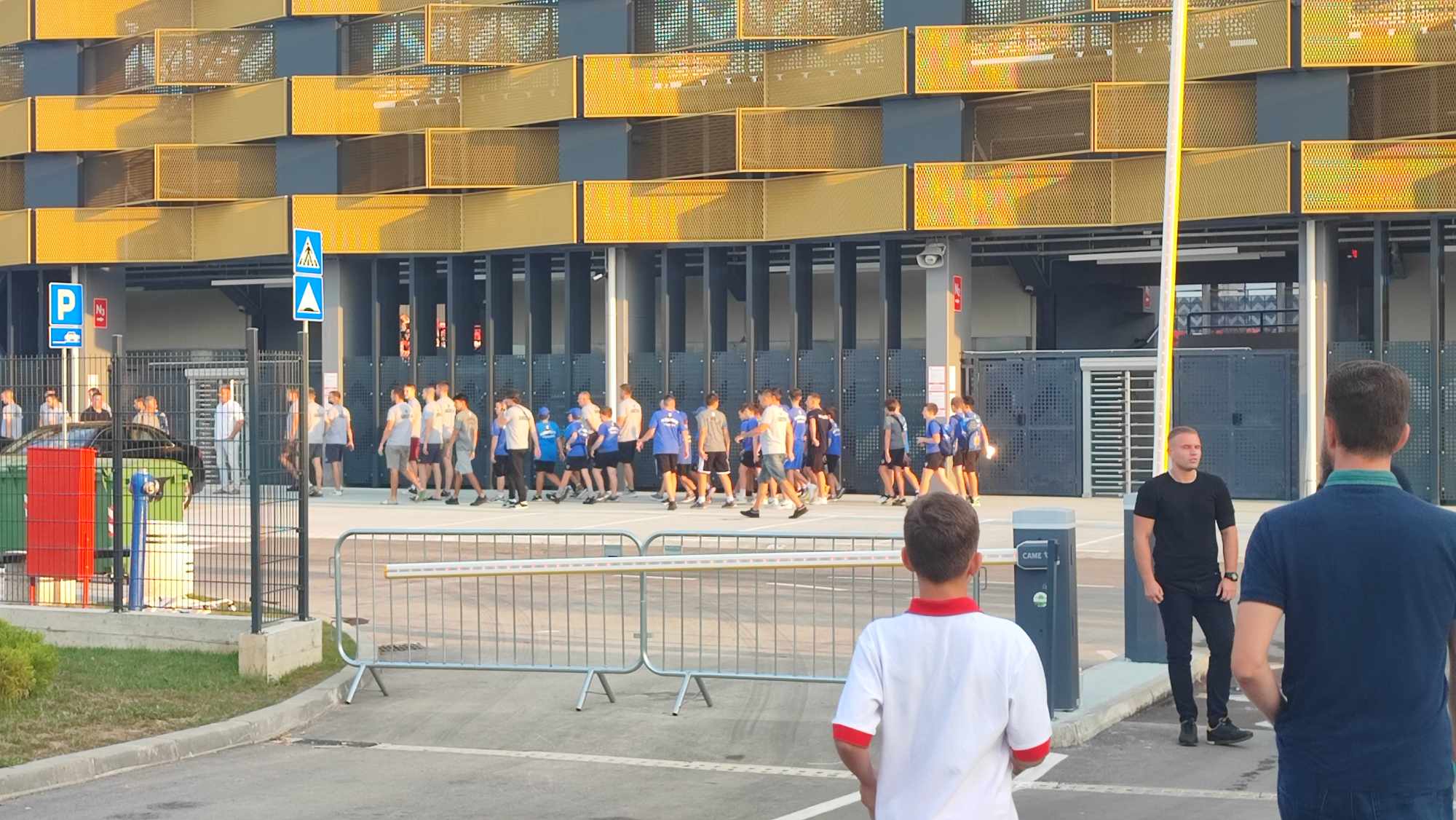 A pred samu građevinu, na poseban ulaz, uvođeni su sportisti, pa čak i deca, podmladak sportskih klubova, obučeni u dresove i majice sa obeležjima klubova za koje treniraju.