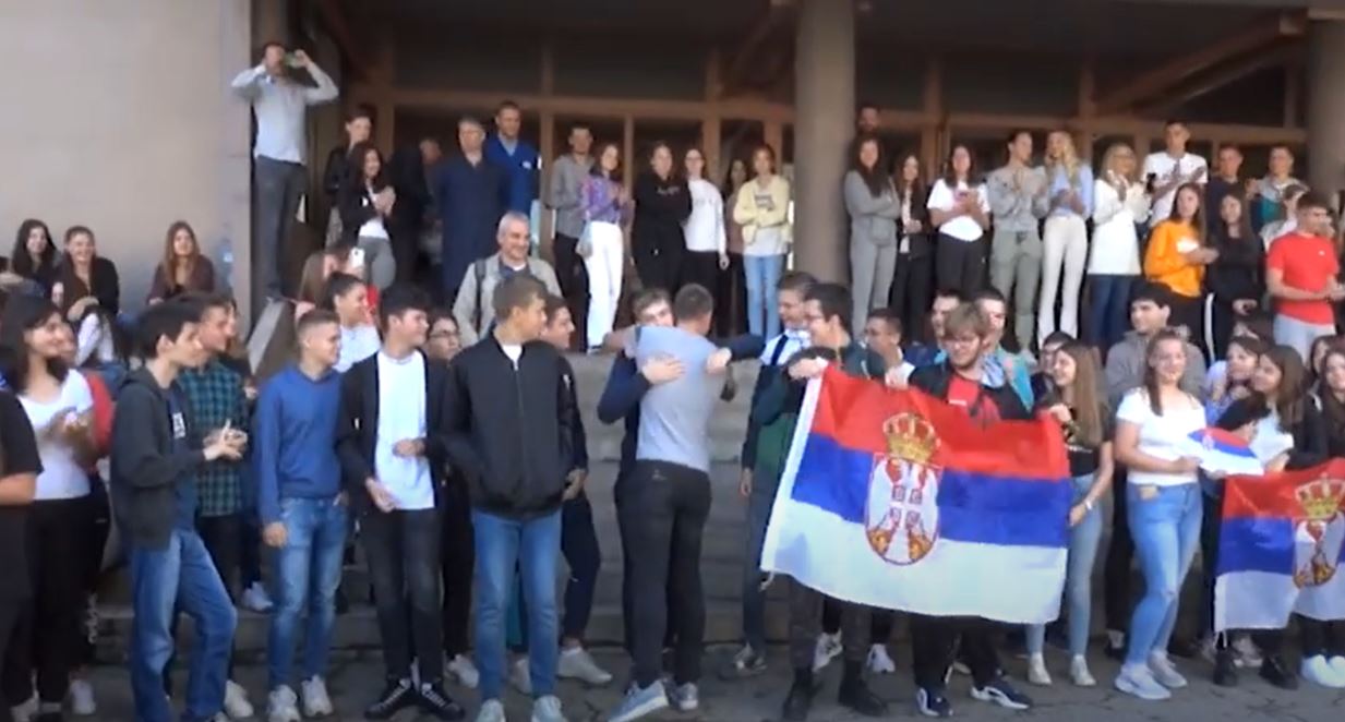 Uz ovacije i gromoglasan aplauz Uroš Živanović iz Plivačkog kluba Dubočica koji je nedavno na održanom takmičenju u Peruu osvojio prvo mesto, zlatnu medalju, i time postao juniroski prvak sveta, jutros je dočekan od strane gimnazijalaca, profesora i svojih drugova u dvorištu škole.