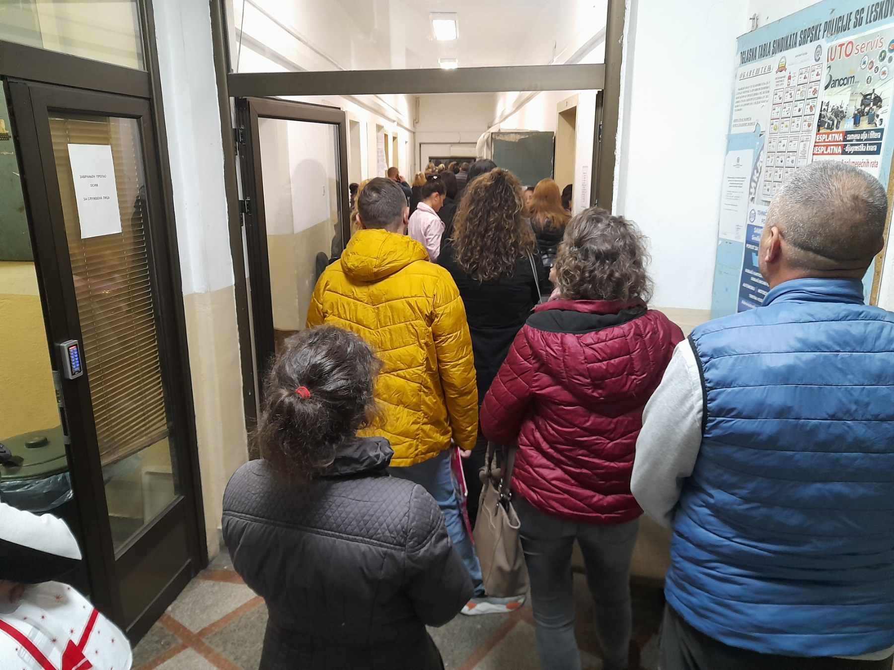 Treći roditelj istrčava iznerviran iz reda psujući i komentarišući kako mu je iz škole njegovog deteta upravo javljeno kako ne treba nova overa prebivališta…