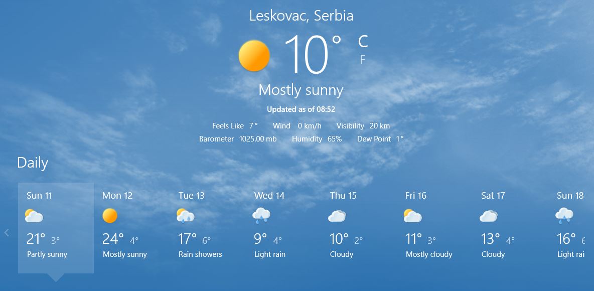 U Leskovcu danas i sutra nas očekuje pretežno sunčano i toplo, a već od utorka biće promenljivo oblačno, uz uslove za pljukove.