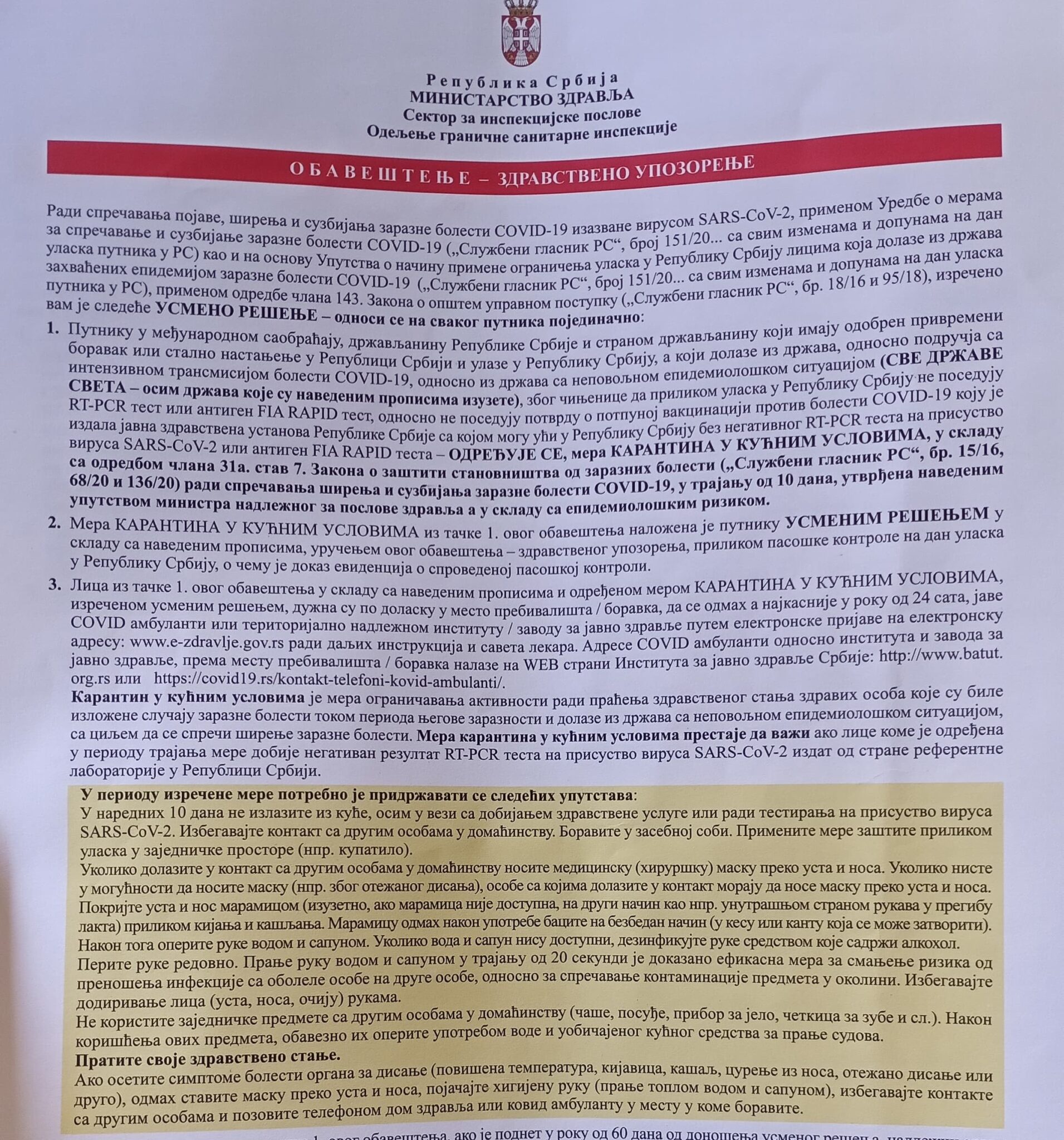 Ne želim da branim ovu vlast, jer ne mogu da je smislim, ali se ovde kod ovih potvrda zanemaruje jedna veoma važna činjenica. A to je da ove potvrde na sadrže QIR kod, kojim se dokazuje validnost potvrde. Na svim našim potvrdama (koje su dvojezične, englesko, srpske), postoji taj kod i lako je njegovim očitavanjem utvrditi verodostojnost iste. Koliko je meni poznato, i EU je donela takvu odluku, da te potvrde moraju da sadrže isti kod. Sa druge strane, koliko mi je poznato može biti validan i PCR test, ili brzi antigenski test ili potvrda da je neko preležao več COVID 19. Sve u svemu ovaj čovek, poseduje makar jednu validnu potvrdu, a zašto to naše „vlasti“ ne priznaju, treba pitati one koji su donosili te mere i uslove. Ako se može u ovu banovinu ući iz Makedonije, Albanije BIH, Bugarske, Crne Gore, Mađarske bez ičega, ne vidim zašto ne bi moglo i iz drugih zemalja EU. Ali očito da naši građani nisu dobrodošli kući, očito će pokvariti one koji ne misle isto kao i „vođa“ sekte.
