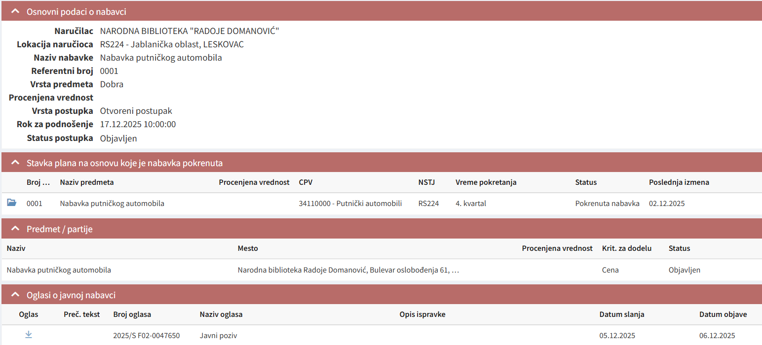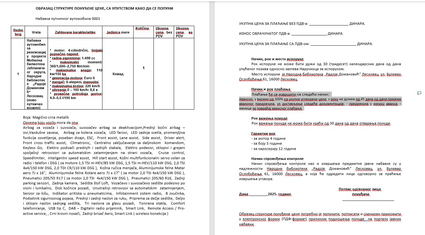 Narodna biblioteka „Radoje Domanović“ iz Leskovca raspisala je tender za nabavku putničkog automobila, ali i pored obimne dokumentacije – ključni podaci ostaju nepoznati: koja marka vozila se kupuje i kolika je njegova cena.