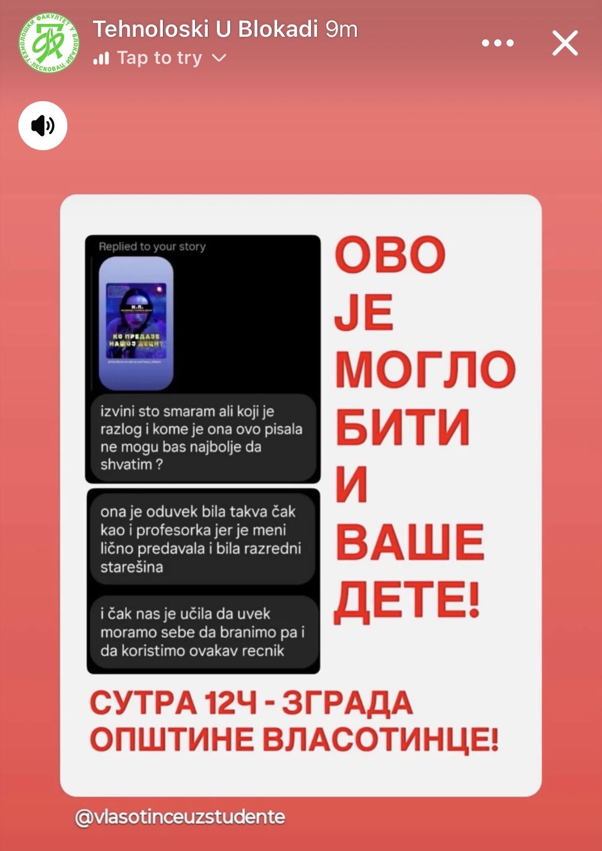 „Diram li te nešto“, „pašute“, „na NEKI“…, to su njene reči. Isti rečnik kao kad je napala novinara N1: „zašto me snimate, diram li ja vas nešto“. Ovo saopštenje pobija činjenica da se izvinjavala majci i mislila da nju to neće da pogodi. Sve i svemu sutra u 12h ispred vlasotinačkog ćacilenda.