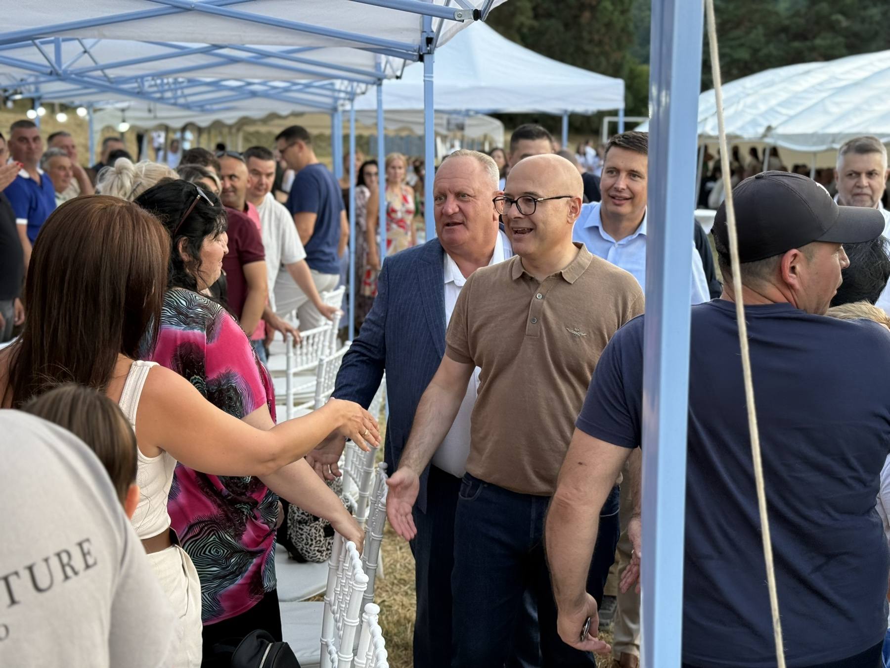 Na slikama se vidi da ljudi sede pod šatorima, a Vučević se pozdravlja sa svakim ponaosob.