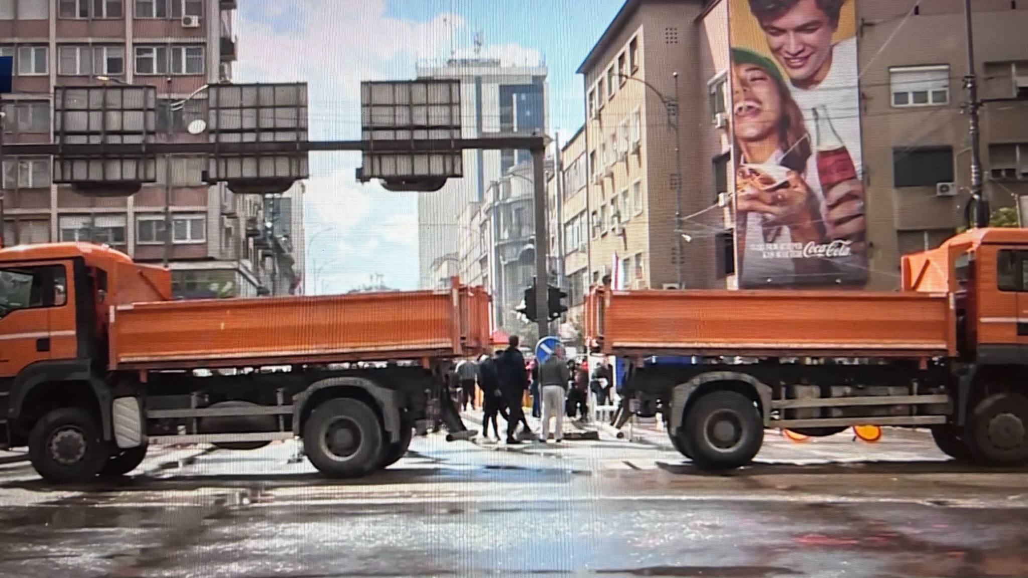 Građani koji su se prethodno okupili na poziv studenata u parku Svetog Save krenuli su ka kružnom toku kod tržnog centra „Delta“.