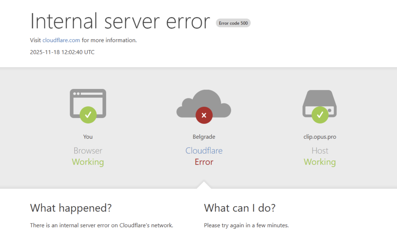 Serveri globalne mreže za zaštitu sajtova Cloudflare su pali i brojni servisi širom sveta rade otežano ili su potpuno prestali da rade – među njima i mreža X, pojedini servisi OpenAI kao što je ChatGPT, kao i niz online softverskih platformi.