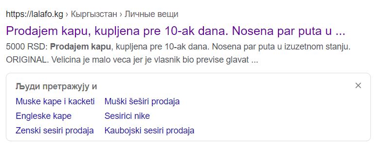 Mada, kada pogledate oglase na internet, ovaj oglas i ne deluje toliko čudno jer je, recimo, jedan Kragujevčanin zaista prodavao kapu, nošenu 5 dana i to za 5.000 dinara.