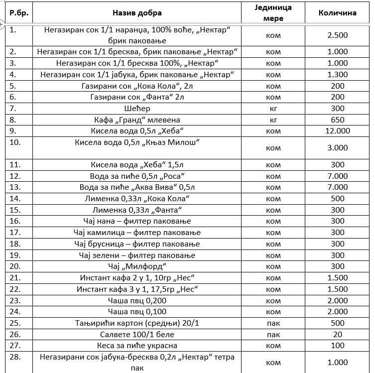 Za opštinare je planirano da se naruči, između opstalog, 6.800 komada sokova “Nektar”, 200 Coca-Coli od 2 litra, toliko Fanti, 300 kilograma šećera i 650 kilograma Grand kafe.