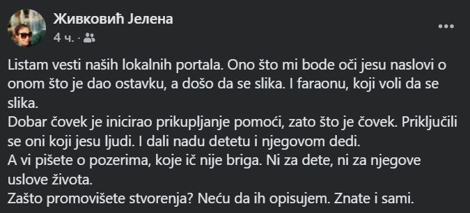 Od tada se aktivno bavi humanitranim radom, a ovoga puta j eodlučio da pomogne ovom malom dečaku na jugu Srbije.