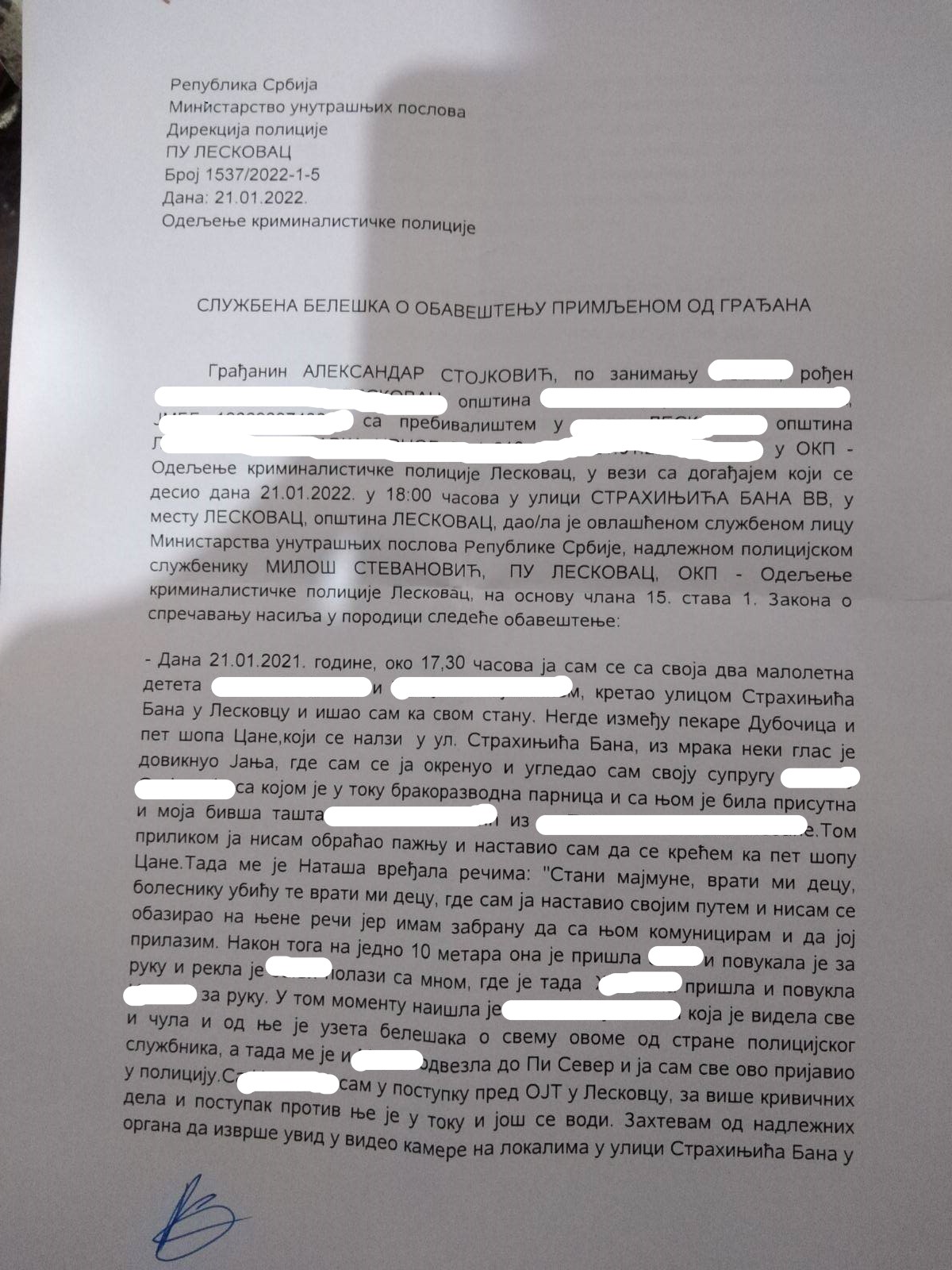 “Otac dece je Centar obavestio o nasilju, sa snimkom, i odmah nakon razgovora kod nas upućen je u Policijsku upravu Leskovac. Snimak je uz krivičnu prijavu prosledio MUP-u. Policija je odmah privela majku dece i predmet ustupila na dalju nadležnost Opštinskom javnom tužilaštvu Leskovac. Ono što je bitno za Centar, to je da su deca trenutno sa ocem na sigurnom, a o daljim postupcima, socijalni radnici će donositi odluku nakon izveštaja i odluka drugih nadležnih organa”, kazao je tada za Rešetku direktor Centra za socijalni rad Leskovac Predrag Momčilović.