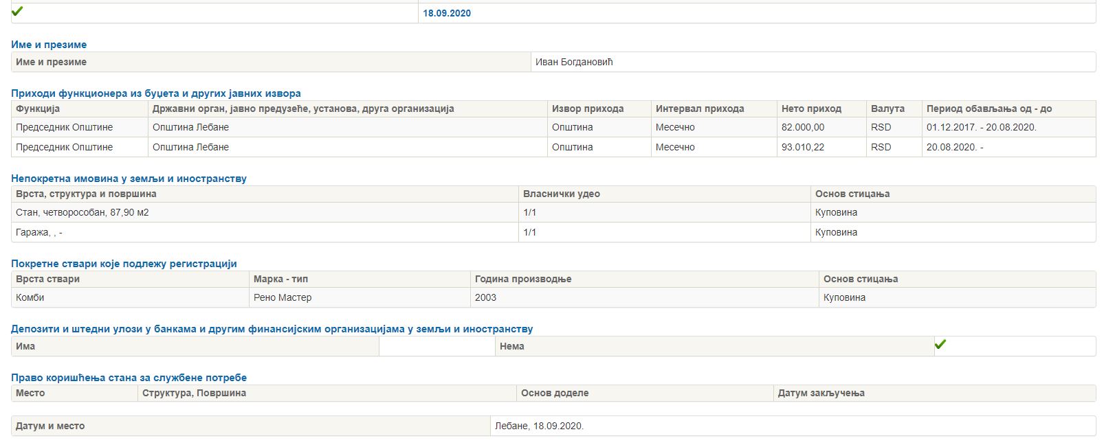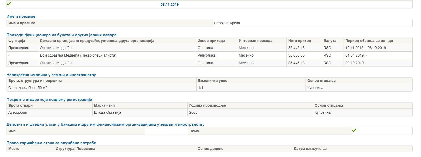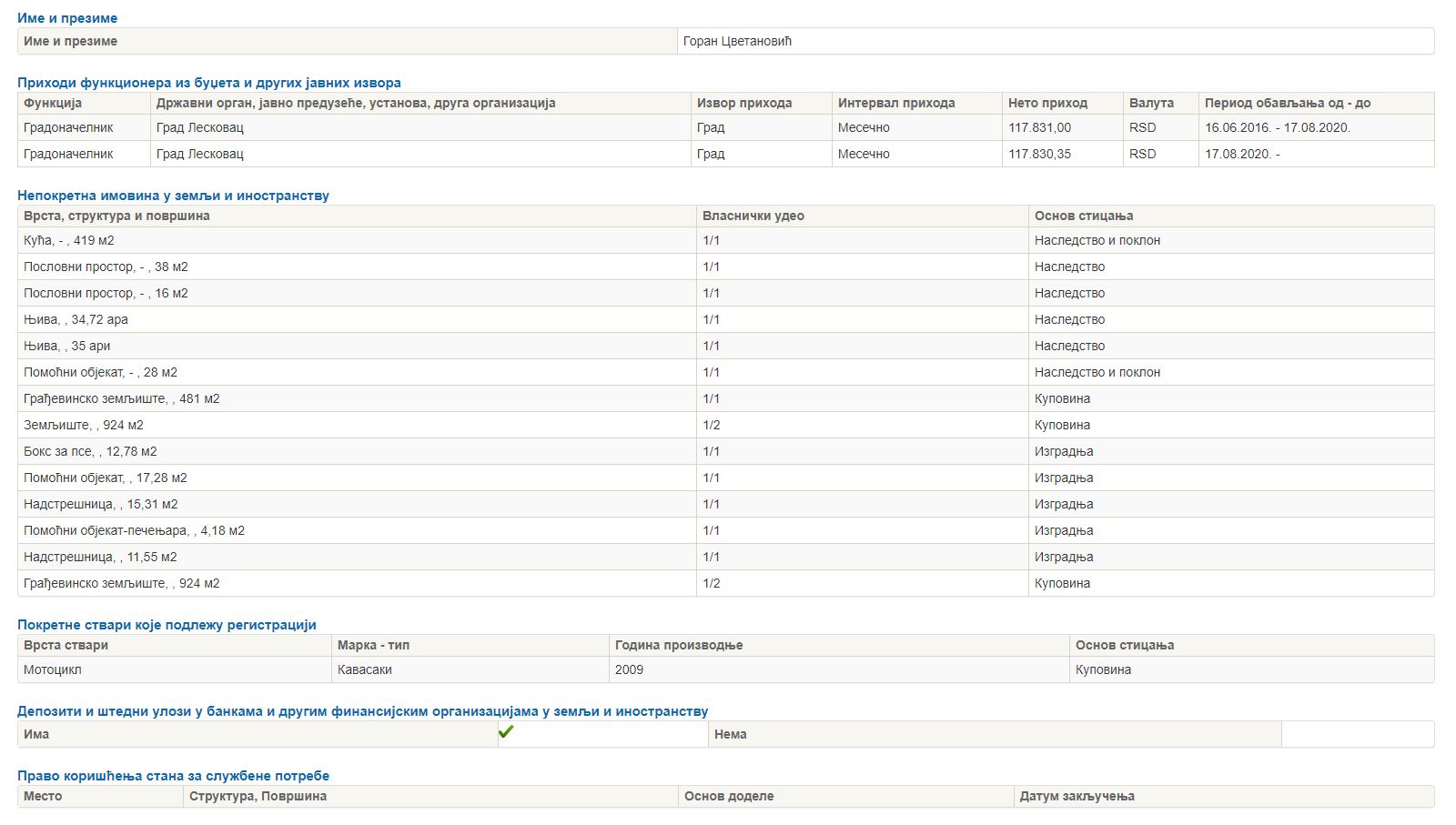 Detaljne imovinske karte preuzete sa sajta Agencije za sprečavanje korupcije, pogledajte u nastavku teksta:
