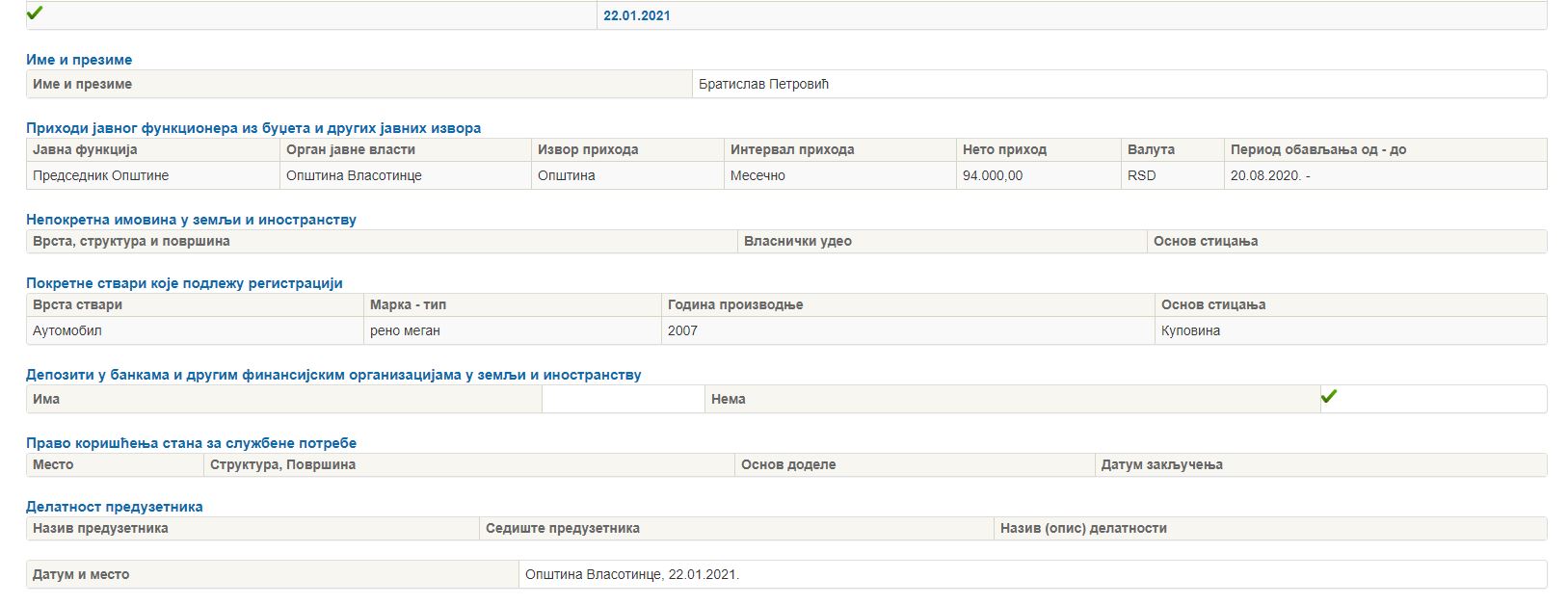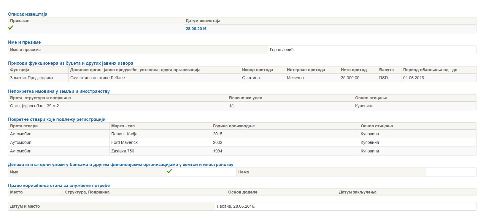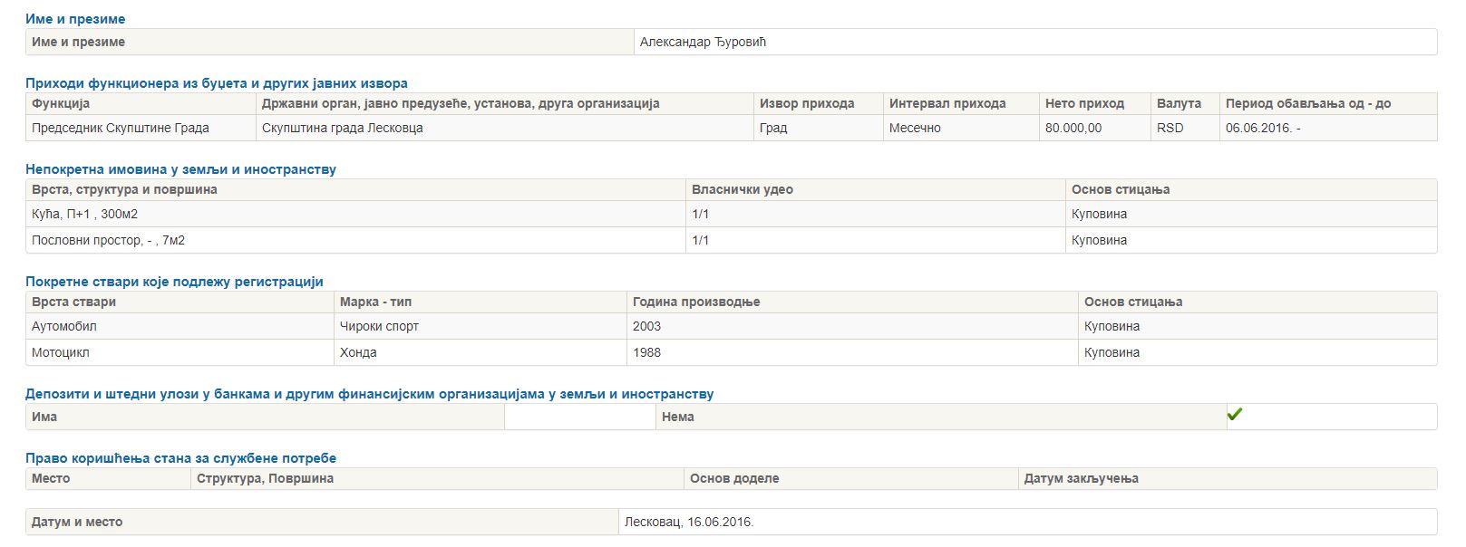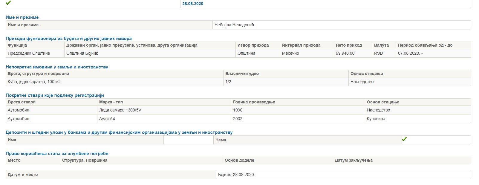 Detaljne imovinske karte preuzete sa sajta Agencije za sprečavanje korupcije, pogledajte u nastavku teksta:
