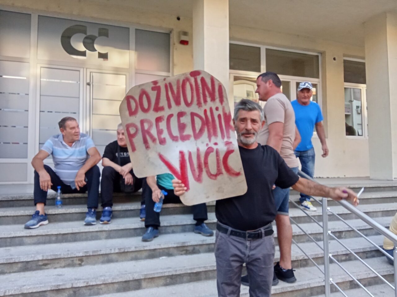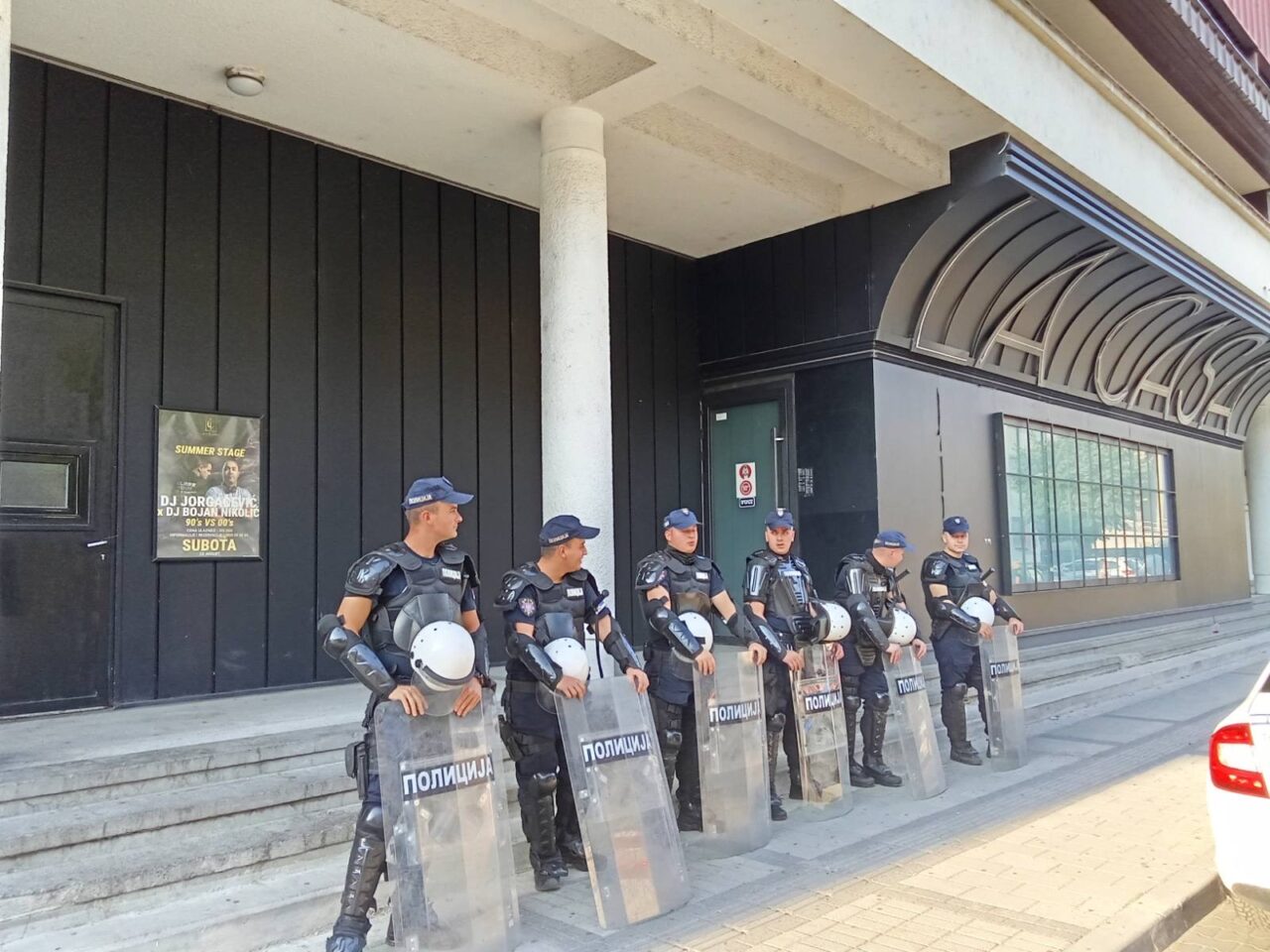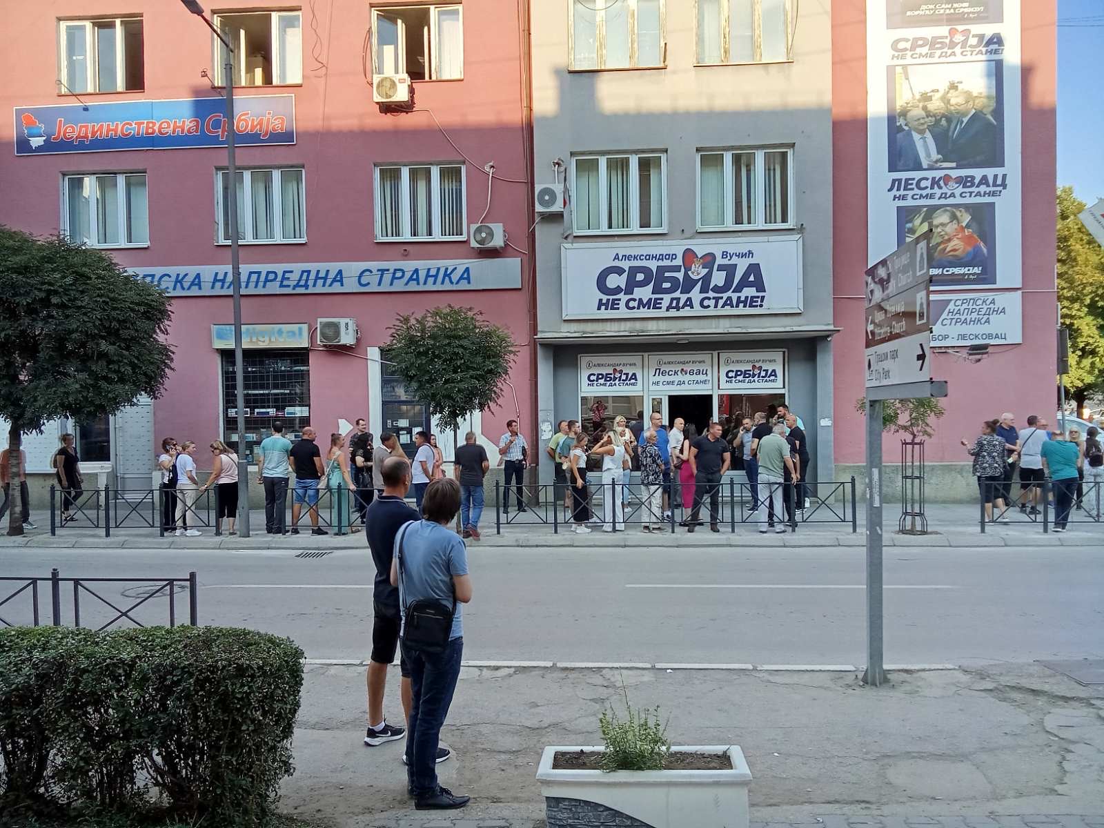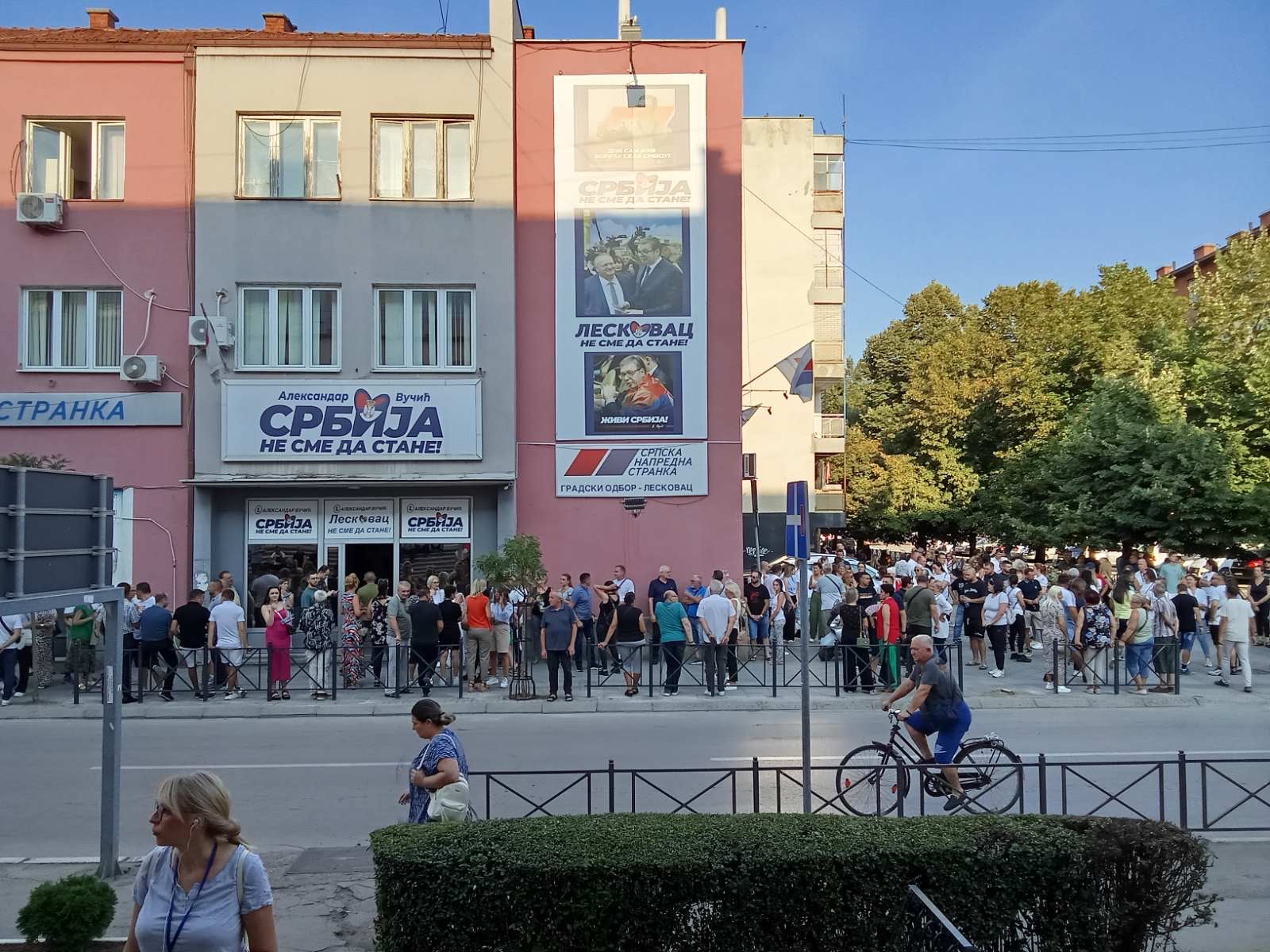 Pristalice naprednjaka iz svih mesta Jablaničkog okruga su već počeli da se okupljaju ispred sedništa stranke, a čuva ih kordon policije.