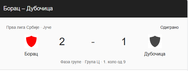 Fudbaleri „Dubočice“ poraženi su na gostovanju u Čačku od ekipe „Borca 1926“ sa 2:1, u utakmici prvog kola plej auta. Domaćin do preokreta i pobede dolazi u nadoknadi vremena