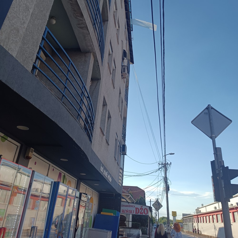 A u centru kod robne kuće na uglu gore zidaju radnici a ništa nije obezbeđeno niti zaštićeno mrežom zamislite da jedno kamenče padne bebi u kolicima na glavu ?