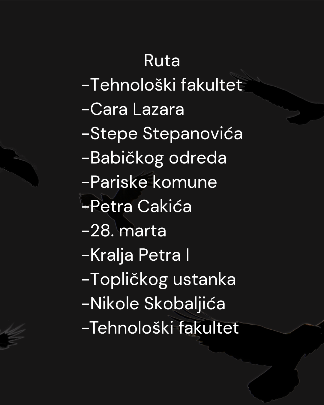 Mesto okupljanja Tehnološki Fakultet u Leskovcu, odaj+kle se kreće u protestnu šetnju.
