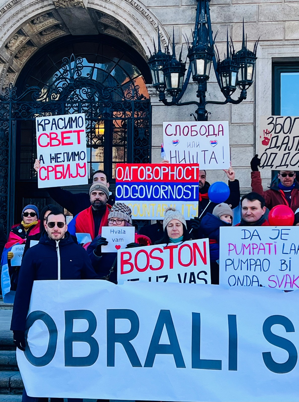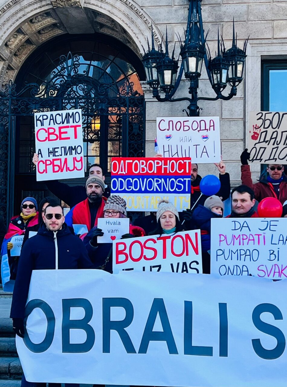 Srbi koji žive u Bostonu se se i ove nedelje okupili, peti put, da pošalju podršku studentima u Srbiji.