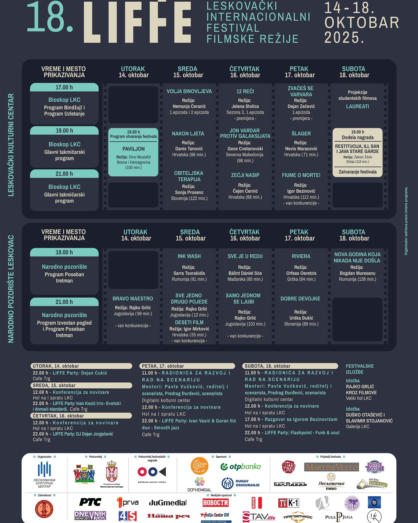 Ovogodišnji LIFFE biće održan od 14. do 18. oktobra u Leskovcu, a publiku očekuje bogat i raznovrstan filmski program, premijere domaćih i stranih ostvarenja, kao i druženja sa autorima i gostima festivala.