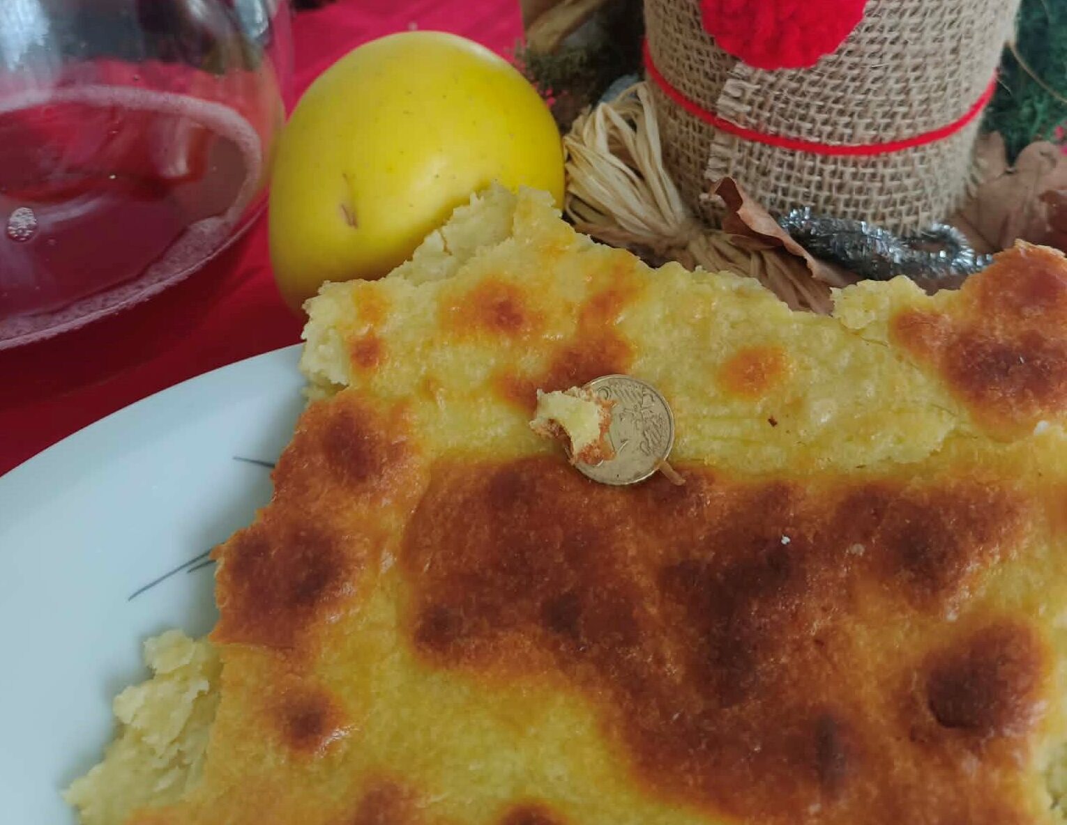 Porodica Pešić u Čukljeniku okupljena je oko stola i prazničnog obeda, na kojoj centralno mesto zauzima poparenica, kora od brašna, vode i masti, posuta sirom. U njoj su sakriveni novčić i pupoljci drena.