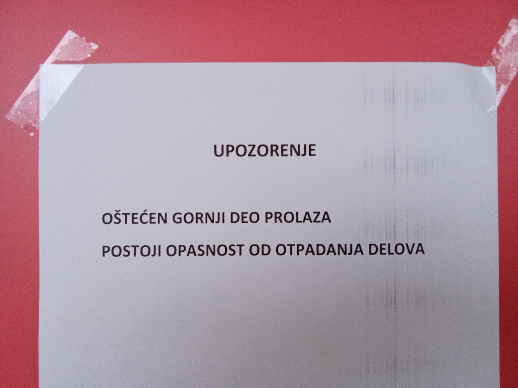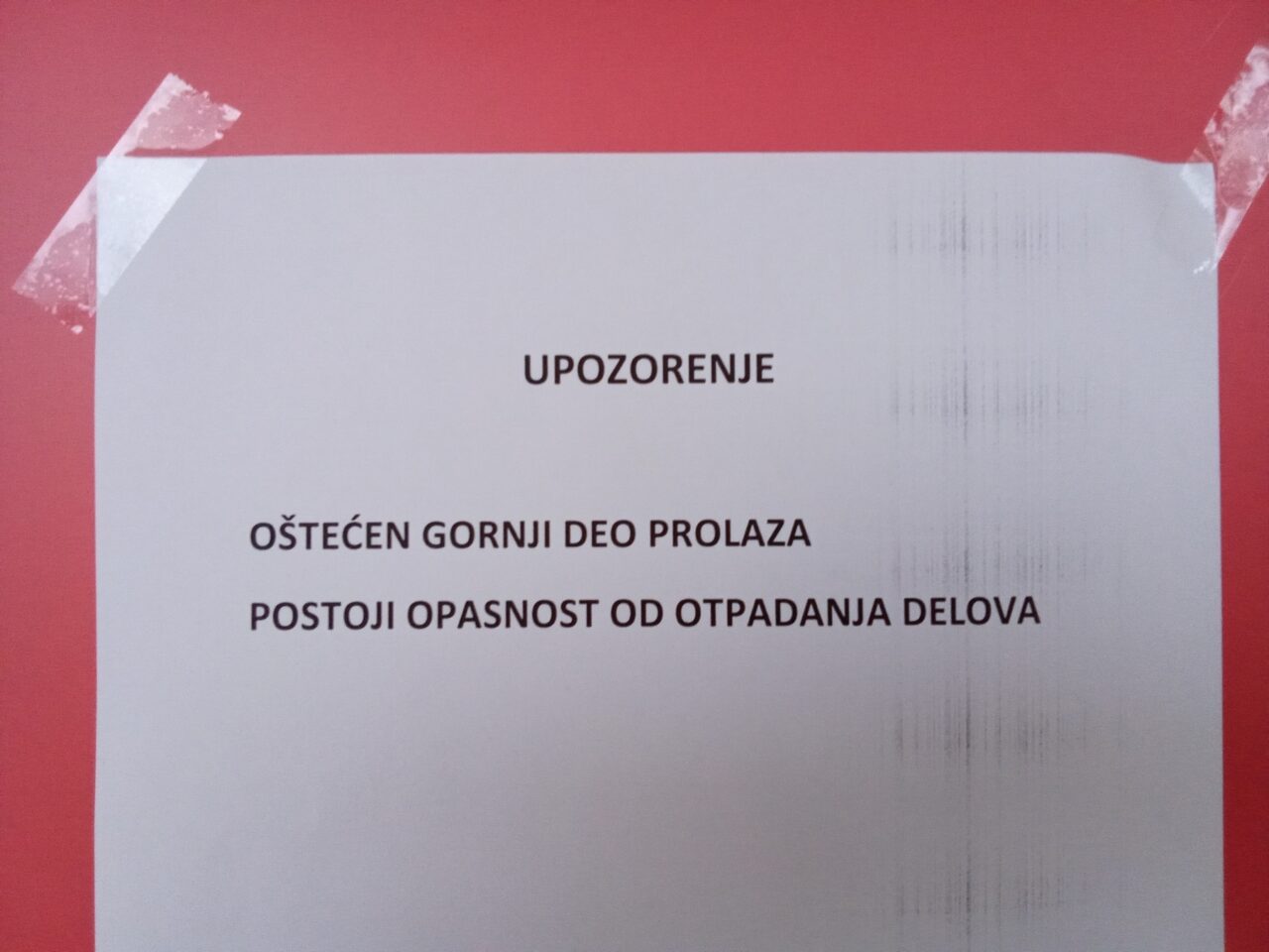 Na ozbiljnost situacije, ukazala je i „Adiko“ banka, koja je na svom izlogu postavila upozorenje o „oštećenju gornjeg dela prolaza i opasnosti od otpadanja delova“.