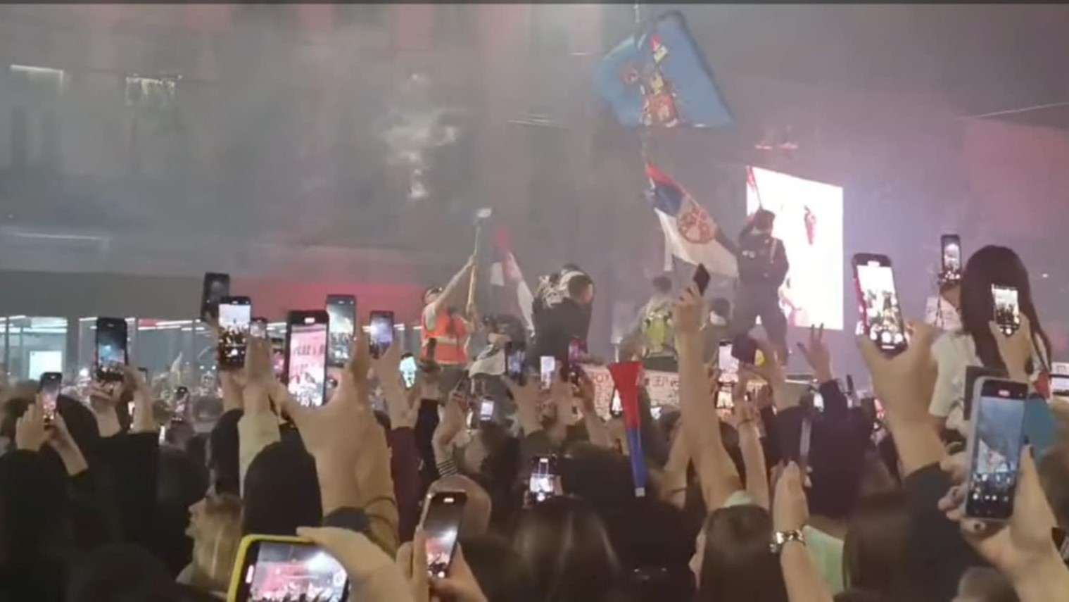 Na dočeku studenta u Beogradu je i majka mladića poginulog u padu nadstrešnice Dijana Hrka koja je u suzama kazala da njene emocije ne mogu rečima da se opišu i da su studenti ujedinili Srbiju.